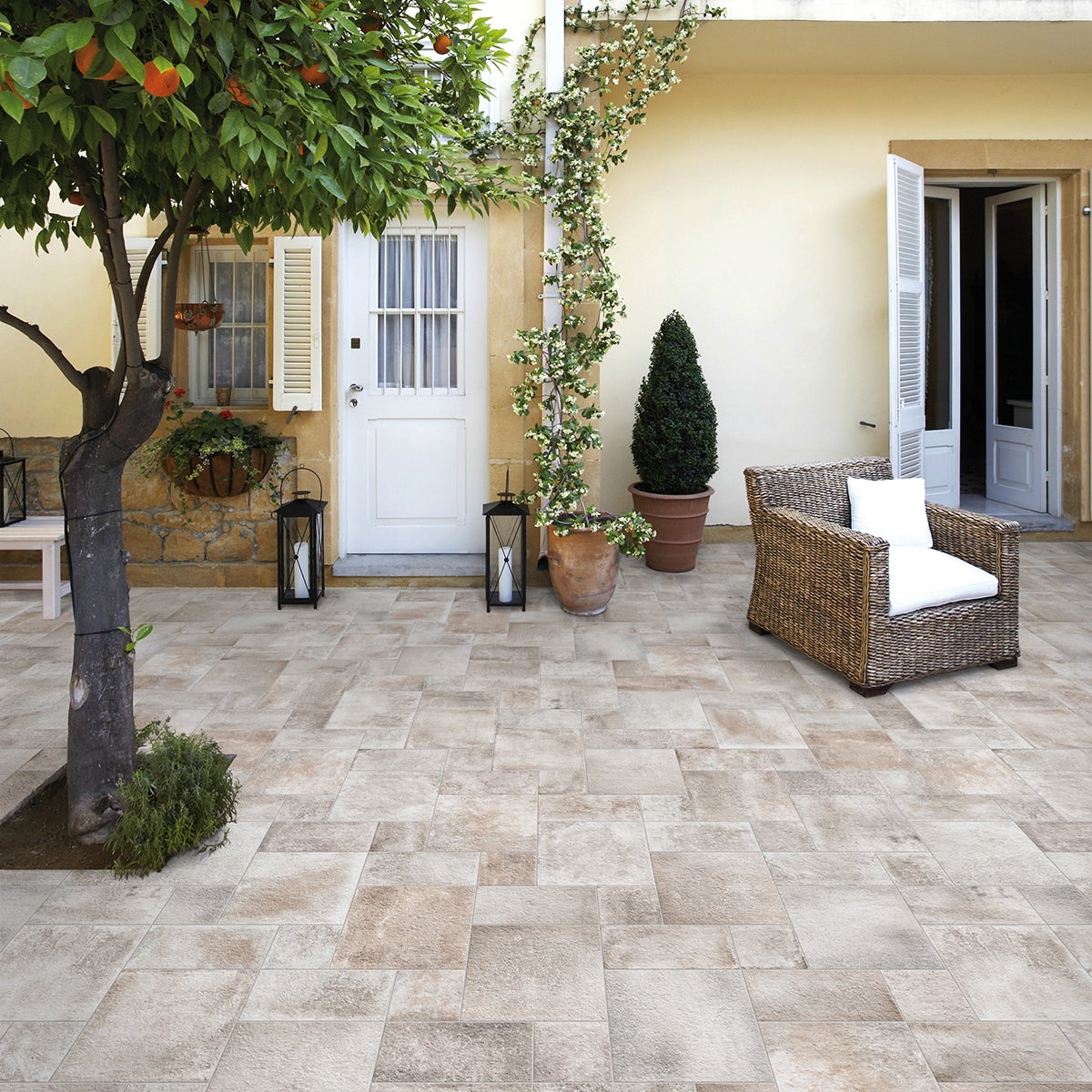 Effetto Pietra. Confezione da 0,90 m². Ideale per un esterno carrabile. Resistente ad un calpestio forte. Indicata per pavimento, in ambienti esterni ed interni. La superficie ruvida antiscivolo migliora l'aderenza ed è particolarmente indicata in ambienti esterni o per realizzare piatti doccia piastrellabili