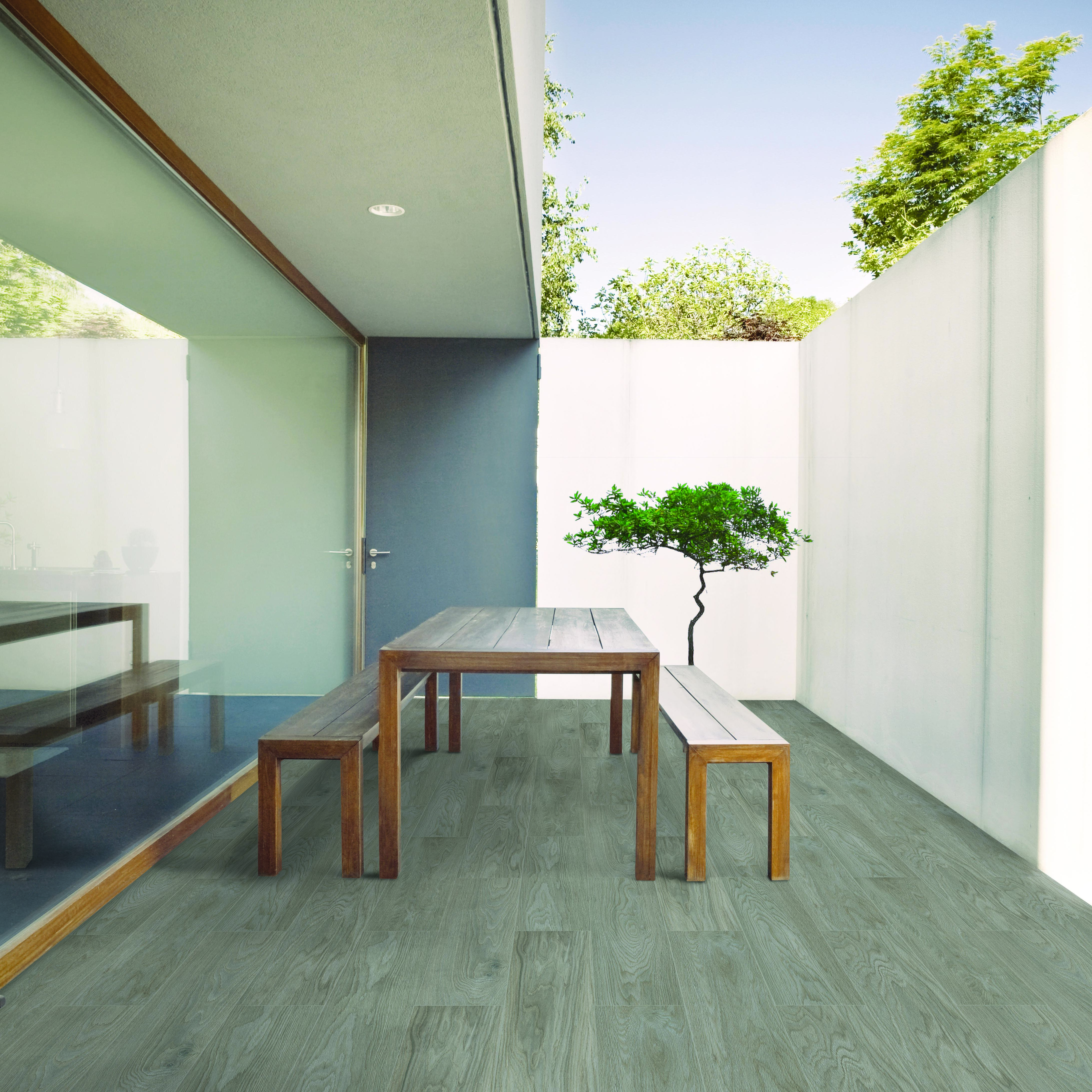 Effetto Legno. Confezione da 1,26 m132. Ideale per un esterno carrabile. Resistente ad un calpestio forte. Indicata per pavimento e rivestimento, in ambienti esterni ed interni. La finitura della superficie permette una facile pulizia