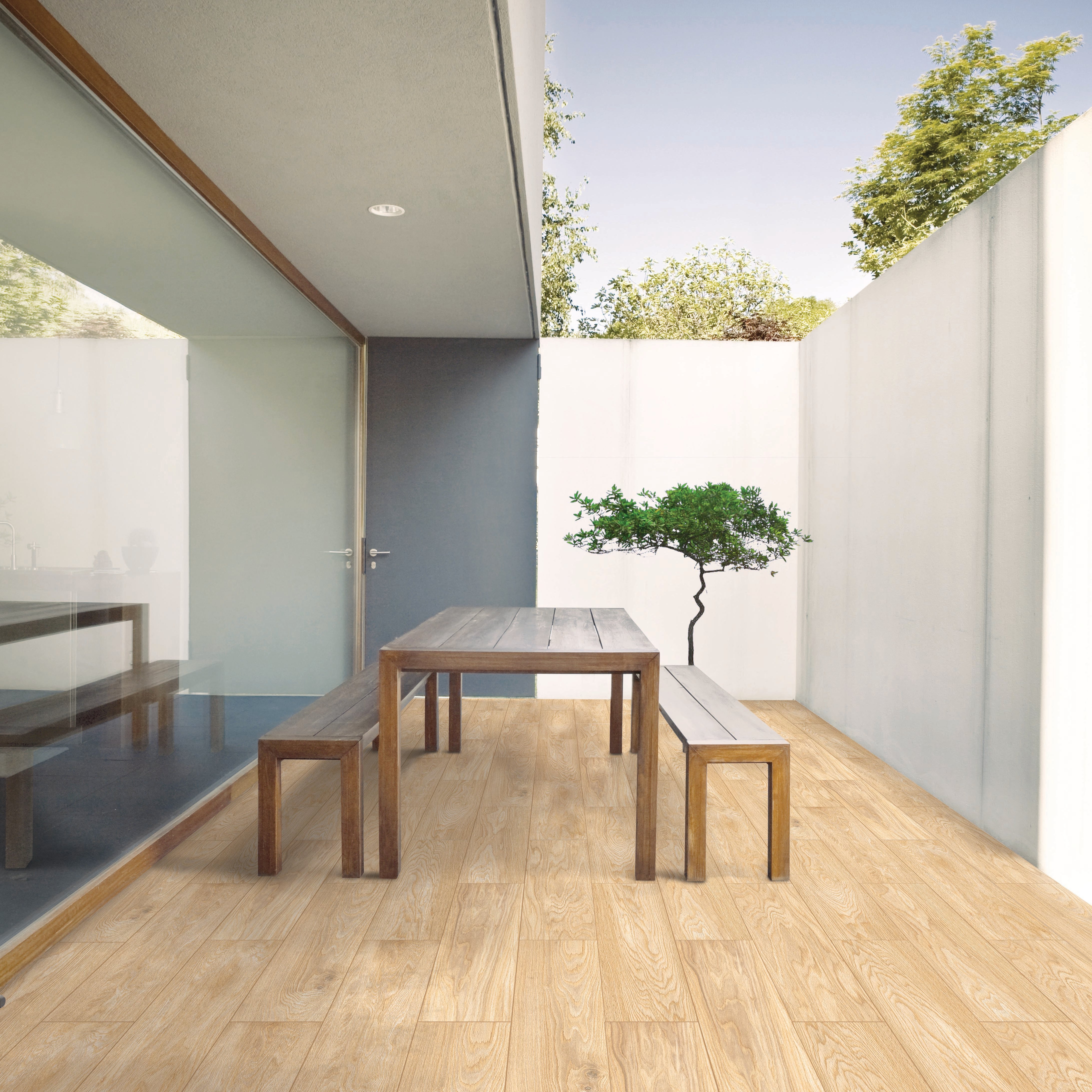 Effetto Legno. Confezione da 1,26 m². Ideale per un esterno carrabile. Resistente ad un calpestio forte. Indicata per pavimento e rivestimento, in ambienti esterni ed interni. La finitura della superficie permette una facile pulizia