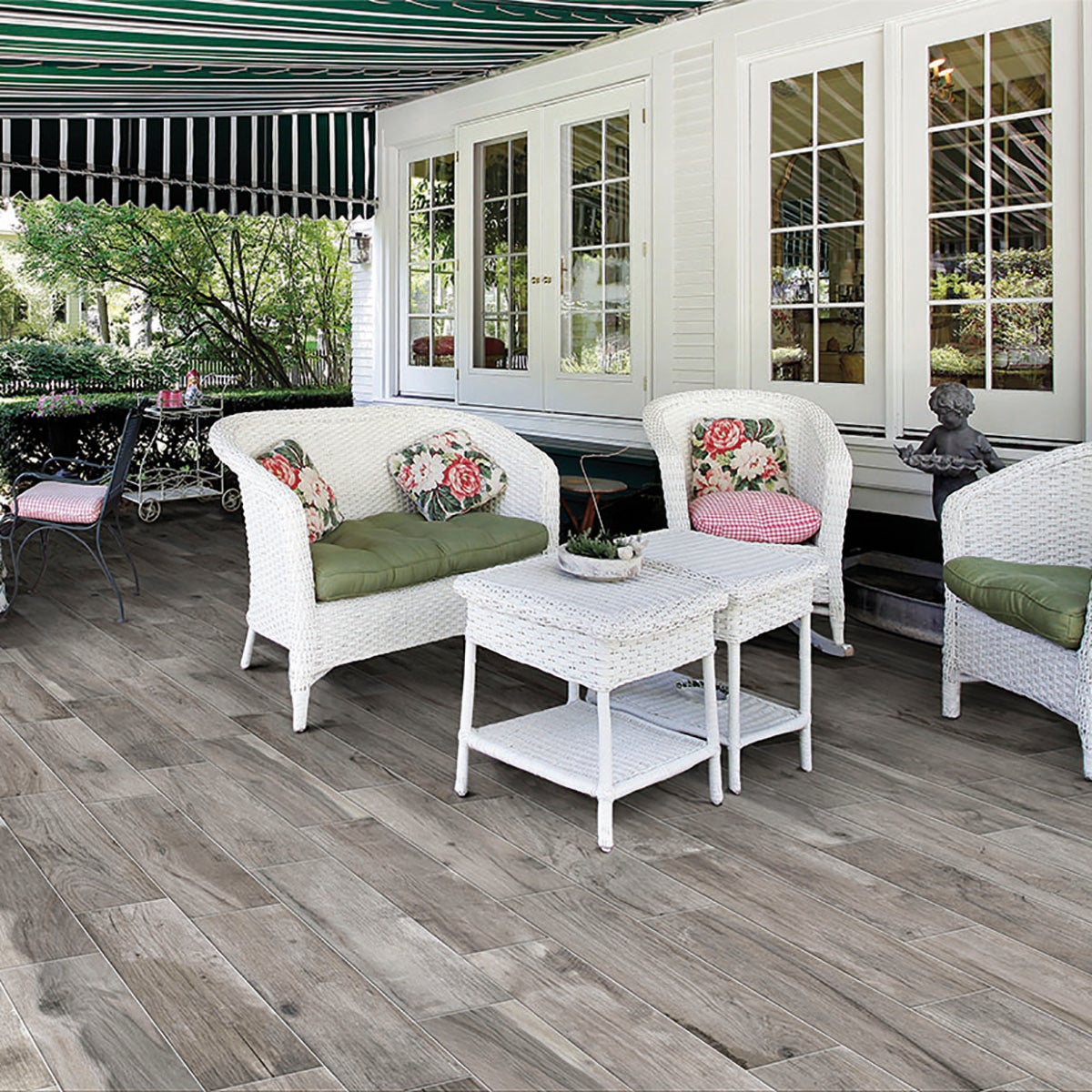 Effetto Legno . Confezione da 1,20 m². Ideale per un esterno carrabile. Resistente ad un calpestio intenso. Indicata per pavimento, in ambienti esterni ed interni. La superficie ruvida antiscivolo migliora l'aderenza ed è particolarmente indicata in ambienti esterni o per realizzare piatti doccia piastrellabili. La superficie opaca è molto pratica per la manutenzione ed è resistente nel tempo