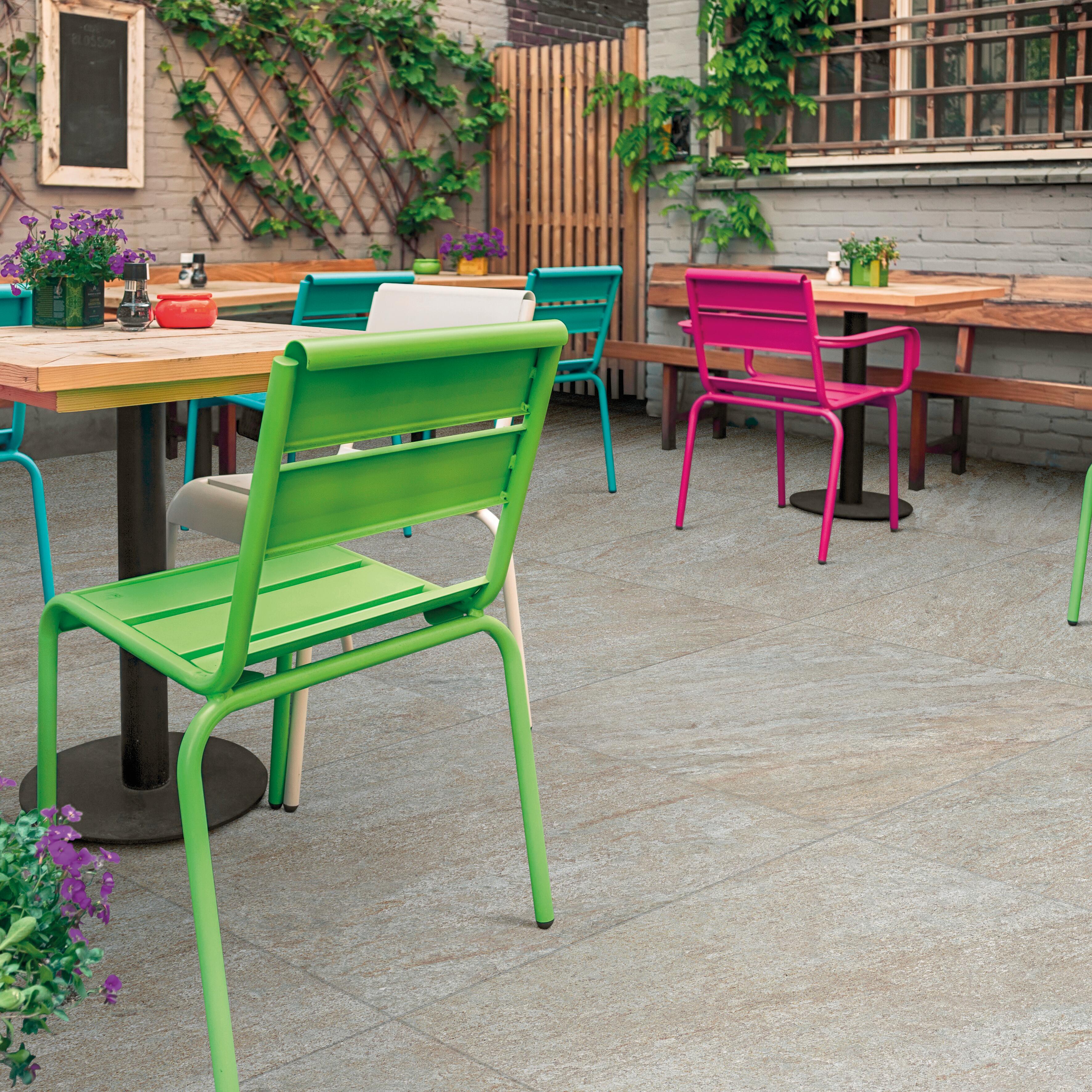 Piastrella per pavimentazioni esterne (aree urbane, viali, terrazze, piscine, parcheggi, giardini pubblici etc...). E' un prodotto semplice da installare e versatile sia in aree pubbliche che private. Può essere installato su erba, ghiaia, sabbia, su massetto con colla o sopraelevata su piedini. Articolo disponibile anche in spessore 9 mm per uso interno. Su richiesta sono disponibili i pezzi speciali come battiscopa, gradoni, griglie e pezzi speciali per piscina.. Indicato per aree carrabili, giardini, vialetti e terrazze. Ideale per stabilimenti balneari, aree industriali/commerciali, camminamenti e arredo urbano e parchi. Colori stabili nel tempo, facile da posare, antiscivolo e facile da pulire. Resistente al graffio e alla scalfittura, resistente all'abrasione, resistente agli sbalzi termici, resistente al sale, agli agenti chimici e alle muffe
