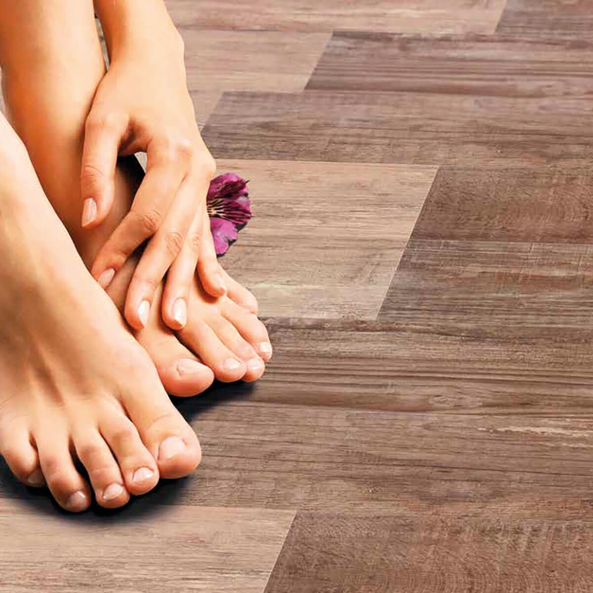 Piastrella in gress porcellanato di colore marrone con effetto legno