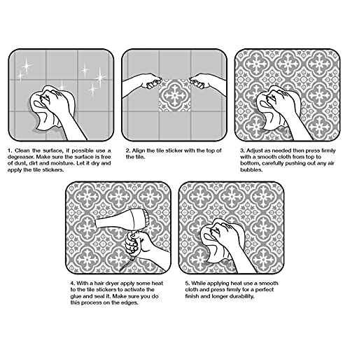 [Decorazione] - Adatto per piastrelle di ceramica, legno, cartongesso, pareti dipinte piane, plastica, metallo, vetro, pietra piatta e molto altro ancora. - Gli adesivi durevoli per piastrelle a mosaico sono facili da pulire, basta pulirli con un detergente non abrasivo (non adatti per piastrelle).