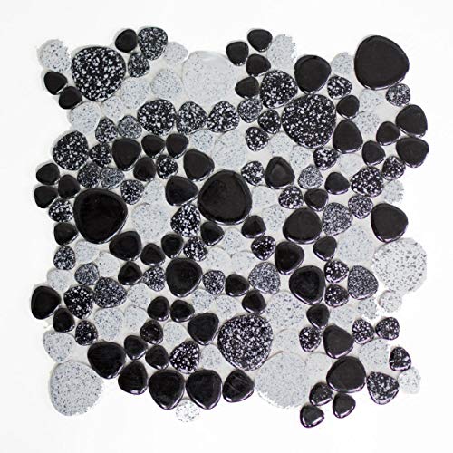 Piastrelle in ceramica a mosaico, colore nero e grigio lucido, per pavimenti, pareti, bagno, doccia, cucina, specchio, rivestimento, vasca da bagno, tappetino a mosaico