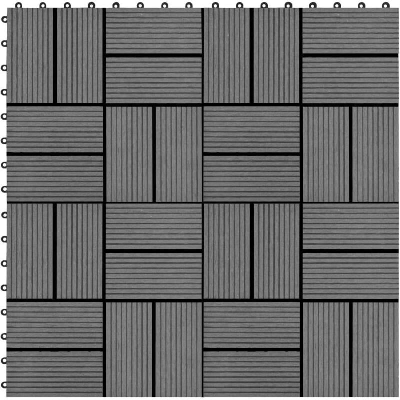 Descrizione: Questo set di piastrelle per decking in WPC, con una dimensione della singola piastrella di 30 x 30 cm, è composto da 22 pezzi e copre una superficie totale di 2 metri quadrati. Sarà perfetto per patii, balconi, bagni, piscine o aree spa. Queste piastrelle in WPC di alta qualità sono caratterizzate da un sistema di interblocco rapido che consente di installarle facilmente e rapidamente senza bisogno di attrezzi. Realizzate in legno composito di plastica di alta qualità, le nostre piastrelle sono impermeabili e molto resistenti. Specificazioni: Colore: Grigio Materiale: Legno composito (WPC) Dimensioni della singola piastrella: 30 x 30 cm (L x P) Superficie totale: 2 mq La consegna include 22 piastrelle per decking