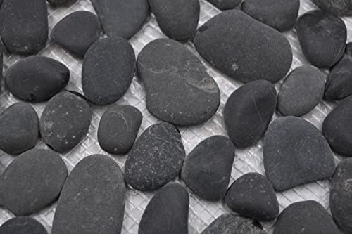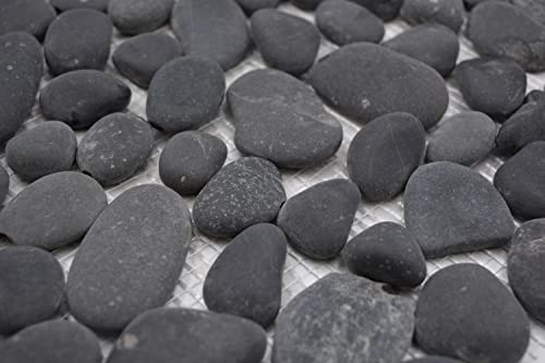 Piastrelle a mosaico, ciottoli di pietra, colore grigio scuro, bombato, per pavimenti, parete, bagno, doccia, cucina, cucina, cucina, rivestimento, vasca da bagno, mosaico, pannello a mosaico