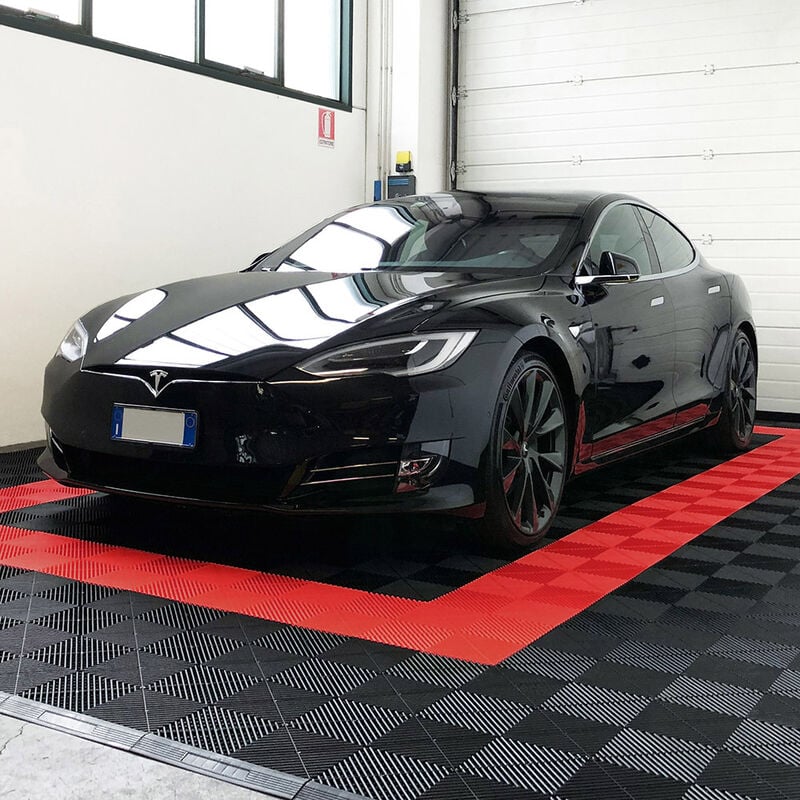 Il kit PAV-03-RO_1 comprende 6 piastrelle nella colorazione rossa, per un totale di 0,96 mq di superficie coperta. La piastrella SOGI PAV-03-RO è un rivestimento in polipropilene ( PP ), dalla texture ad effetto drenante: fluidi, polveri e detriti di piccole dimensioni trapassano la mattonella che dunque rimane sempre pulita e asciutta. É particolarmente indicato per pavimentare garage, centri car detailing, autofficine, autosaloni, box, fiere, capannoni, centri sportivi, ed in tutte quelle operazioni dove impatto visivo e resa estetica, ma anche resistenza e durevolezza sono un must. La scelta del polipropilene è dettata dagli innumerevoli vantaggi offerti da questo materiale: è inodore, atossico, leggero, 100% riciclabile, ha una buona resistenza all'abrasione, non assorbe acqua ed ha elevate proprietà isolanti . A queste peculiarità si somma l' ottima resistenza termica, la quale fa sì che, a prescindere dalla temperatura stagionale, le piastrelle SOGI PAV-03-RO non