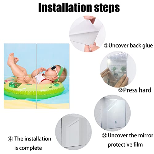 Confezione e dimensioni: viene fornito con 4 fogli di piastrelle a specchio acrilico, 26 x 26 cm/10,2 x 10,2 pollici. Ottimo per la decorazione domestica fai-da-te e lascia che la tua casa appaia più spaziosa.