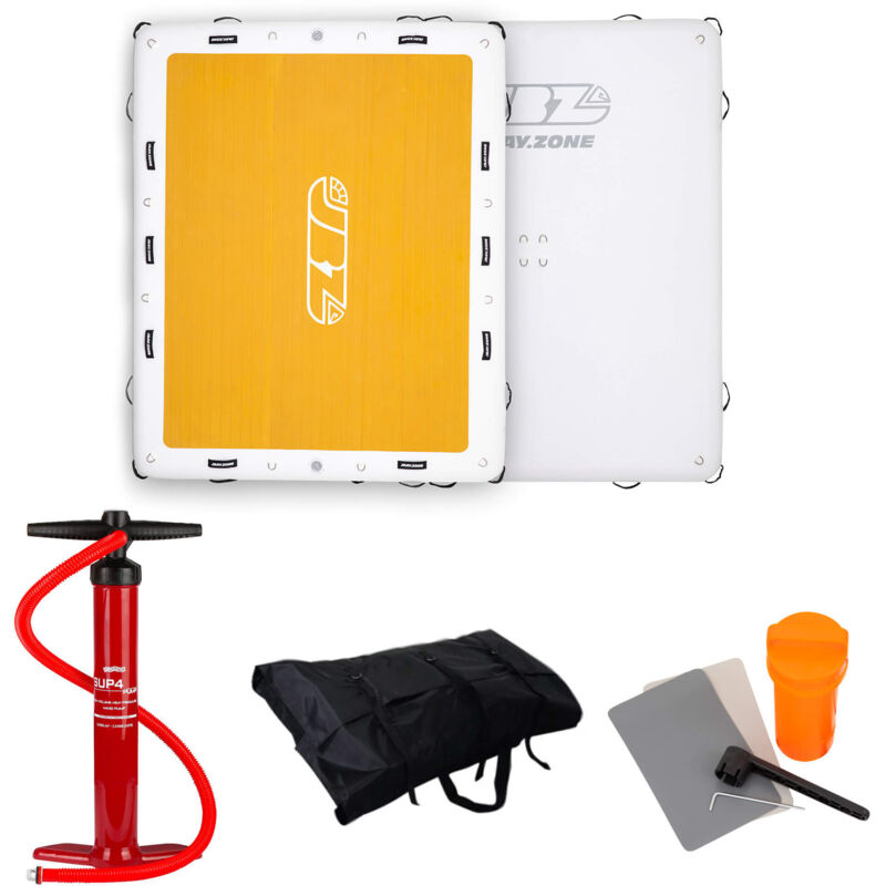 Piattaforma Gonfiabile Piattaforma Gonfiabile 250x200x20 cm Jbay.Zone Jdock Jdock è la piattaforma gonfiabile per il relax firmata JBAY.ZONE stabile, resistente ed estremamente versatile. Jdock si può usare in infiniti modi, infatti, si dimostra perfetta per esempio come piattaforma per lo Yoga o come solida base per tuffarsi in acqua o rilassarsi sotto il sole. La costruzione interna in Drop-Stitch fornisce un ottimo supporto al peso fino a ben 470kg. Caratteristiche Tecniche Materiale: PVC laminato con tecnologia DROP-STITCH Volume: 970L Peso: 25kg Spessore: 20cm Larghezza: 200cm Lunghezza: 250cm Pressione Gonfiaggio: 6-8Psi / 0.41-0.55Bar Tipologia Valvole: Alta Pressione ( Innesto a Baionetta ) Nr. Camere d'Aria: 1 Capacità di Carico: 470kg Paddle: Venduto Separatamente Borsa Trasporto: Inclusa Pompa: Inclusa Doppia Azione Bravo 2x2000cc 2.0bar / 29psi Manometro: Integrato nella Pompa Cavigliera di Sicurezza: Venduta separatamente Supporto Camera: No Kit Riparazione: Incluso