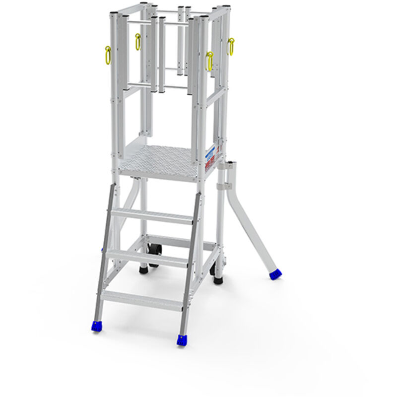 ACCESSO CANTIERE - Piattaforma in alluminio ideale per lavorare in edifici industriali, fabbriche, capannoni e cantieri. - Attrezzatura per la verniciatura, i lavori elettrici, l'intonacatura, il lavoro il più vicino possibile alla parete garantisce un lavoro confortevole. - Lavori di edilizia, muratura e cemento armato. ACCESSO INDUSTRIALE - Nel settore della manutenzione per l'assistenza, l'installazione o la riparazione di macchinari industriali. - Accesso a scaffalature alte o a spazi di stoccaggio in magazzini logistici o edifici industriali. LAVORARE VICINO ALLA PARETE - Scaletta con base non svasata per lavorare vicino alla parete o a una macchina. - Scaletta progettata con una leggera inclinazione posteriore per lavorare il più vicino possibile a una facciata. - I piedini stabilizzatori sono girevoli a 270° per ridurre al minimo l'ingombro a terra e garantire una grande stabilità. CARICHI PESANTI - Attrezzature con capacità di carico fino a 300 kg, mentre la maggior parte