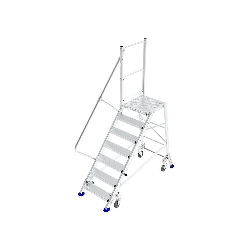 USO - Piattaforma mobile per officine, linee di produzione, assemblaggio... - Piattaforma di accesso per ispezione, manutenzione, assistenza... - Attrezzature adatte a diversi settori: industria, energia, edilizia, trasporti, logistica... CARATTERISTICHE. - Profondità dei gradini di 16cm, inclinazione della scala di 50° per un comfort ottimale. - Numero di gradini compresa la piattaforma. - Piattaforma rotabile conforme al decreto 2004-924, previa scelta oculata delle protezioni. RUOTE - 4 ruote retrattili per il bloccaggio automatico della piattaforma durante la salita. - Ruote da 50mm di diametro da ES301 a ES305 - Ruote da 125mm di diametro da ES306 OPZIONE - Kit di 4 ruote Ø 125mm retrattili con leva centralizzata SU RICHIESTA - Altre dimensioni di piattaforma possibili: 0.56 x 0.36m o 0.40 x 0.36m SPECIFICITÀ ES301G-R / ES302G-R / ES303G-R: Piattaforma fornita senza parapetto (in quanto non necessaria): il parapetto è direttamente accessibile.