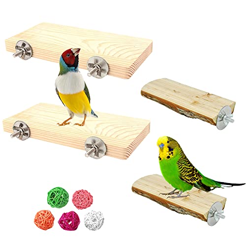 Piattaforma Pappagallo in Legno, Xpsirny 4 Pezzi Posatoio per Uccelli in Legno, Pappagallo Posatoi Stand con 5 Palline in Rattan, Pappagallo Piattaforma Stand Naturale, Accessori per Pappagalli