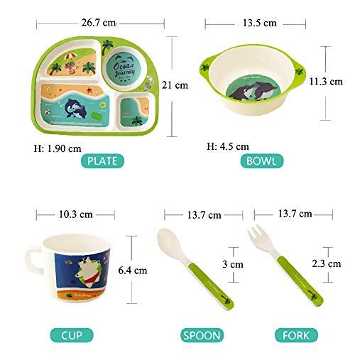 Set Piatti Per Bambini Cucchiaino Svezzamento Pappa Bimbi Per Colazione Pranzo E Cena | Materiale Naturale Senza Plastica O Additivi Chimici | Piatto A Scomparti Tazza Posate | 12 Varianti