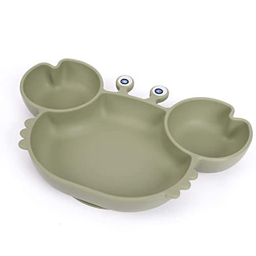 Piatti per bambini con ventosa divisa, set forchetta per bambini, in silicone, con ventosa, piatti e utensili per bambini, colore: blu granchio (verde)