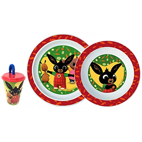 Set piatti e bicchiere con cannuccia, Bing, Sula, Pando, Flop, 3 pezzi, stoviglie per bambini, bicchiere, BPA Free,adatto al microonde, multicolore - BIN20/3PZBICCHIERE