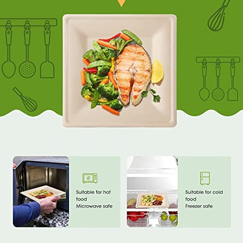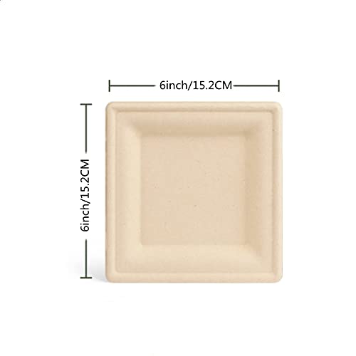 50 Piatti Biodegradabili in Canna da Zucchero, Ecologicamente Compostabile Piatti a Quadrato,Per dessert e barbecue (15,2 cm)