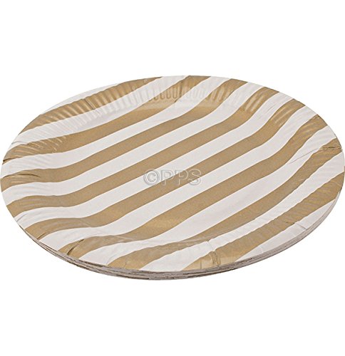 20 piatti di carta rotondi a righe dorate, 23 cm, ideali per cibi caldi e freddi