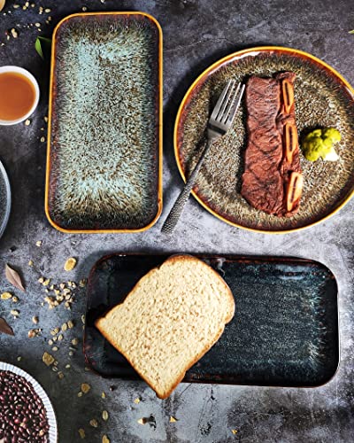 YA JU Set di 4 piatti in ceramica, piatti principali per bistecca, pane, risotto, pasta, antipasto, microonde, forno e lavastoviglie, antigraffio (piatto piano rettangolare nero)