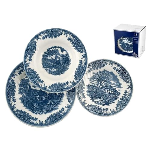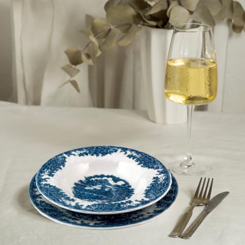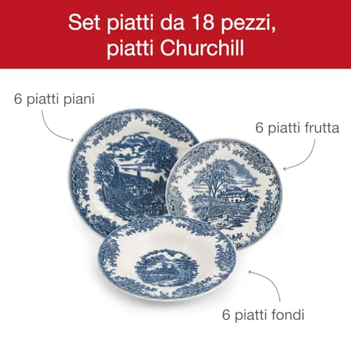 Piatti Churchill BrookBlue da Tavola, 18 Pezzi, Bianchi e Blu