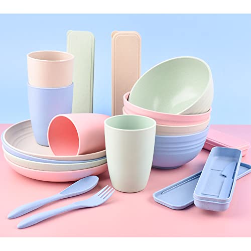 La confezione include: questo set di stoviglie infrangibili include 4 piatti, 4 ciotole, 4 tazze e set di 4 posate.