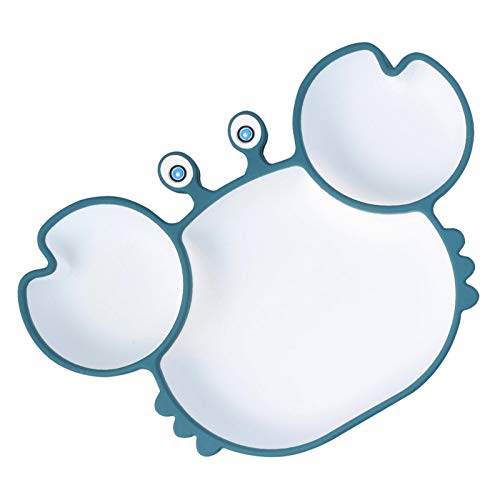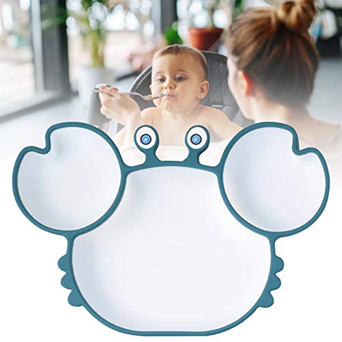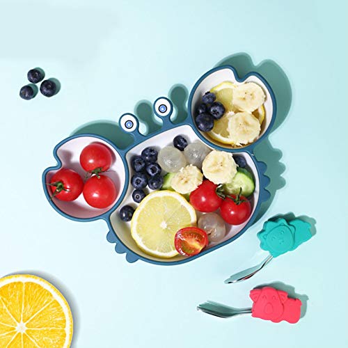 N/K Piatti divisi in Silicone per Bambini con Ventosa, Simpatici Piatti da Pranzo divisi a Forma di Granchio per Bambini dai 9 Mesi in su, Blu Rosa Marrone 231515cm