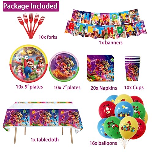 Piatti Festa Compleanno, 78 PCS Stoviglie per Feste di Compleanno per Bambini, Set di Stoviglie per Feste, 23CM Piatti,18CM Piatti, Tazze, Tovaglioli, Forchette, Tovaglia, Striscione, Ballon