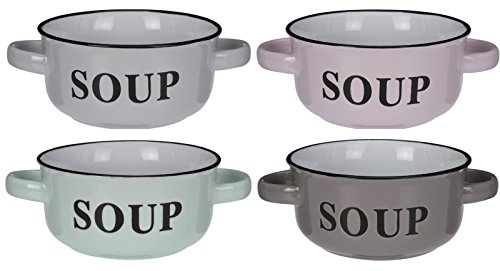 Versatile, resistente, set di 4 piatti fondi in gres con manici di dimensioni generose è perfetto per servire zuppe, cereali, stufato e altro ancora. Charming "Rustico" Stoneware Soup Bowls adatto a qualsiasi tavola