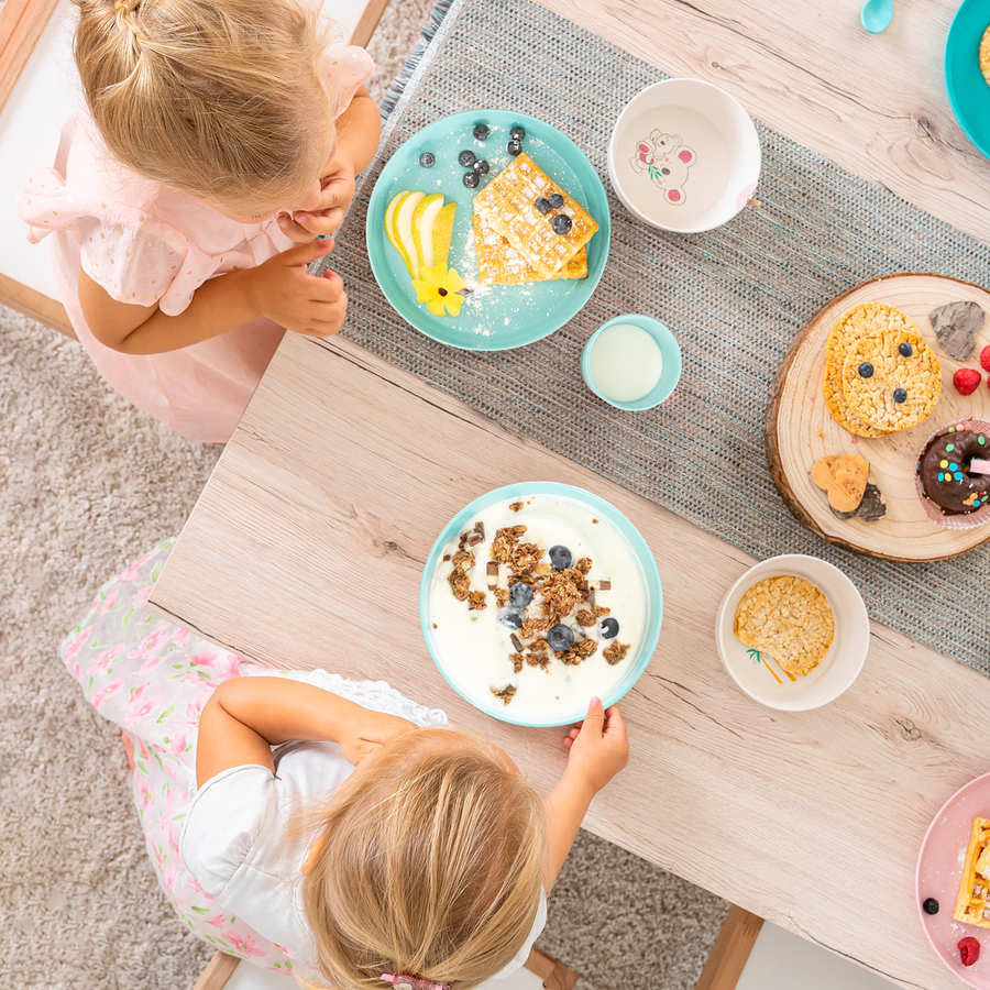 Che si tratti di colazione, pranzo o cena, ogni pasto è un momento di pratica per il bambino. reer Il set di stoviglie della serie Growing è particolarmente adatto per imparare a mangiare in modo autonomo: le dimensioni e il peso sono ottimizzati per le capacità motorie e la forza dei bambini più piccoli. reer Grazie alla produzione a risparmio di risorse, i prodotti Growing sono particolarmente sostenibili. Mangiare in modo più divertente Mangiare con stoviglie dai colori allegri è molto più gustoso, perché non è solo il cibo a decidere se il bambino si diverte. Ecco perché i set di stoviglie in colori freschi possono essere combinati perfettamente e creare una tavola vivacemente decorata, proprio come piace al bambino. Questo risveglia la curiosità e l'interesse per il cibo e promuove lo sviluppo di abitudini alimentari attive. Robusto e facile da pulire Soprattutto quando il vostro piccolo sta imparando a mangiare, è del tutto normale che ciotole e piatti vengano messi a dura prova. reer Le stoviglie, con la loro superficie robusta, resistono alle condizioni difficili della vita quotidiana con i bambini e possono essere utilizzate senza problemi anche nel microonde. Le stoviglie possono essere lavate anche in lavastoviglie per una pulizia particolarmente comoda e igienica. Per la prima merenda reer Il set di 2 piatti è ideale per i primi tentativi di mangiare. Il bordo rialzato impedisce al bambino di spingere il cibo fuori dal piatto quando lo afferra con la mano o impara a usare le posate. reer Anche se qualcosa va sempre storto quando si impara a mangiare, è molto più comodo con le stoviglie Growing di . Promuove l'autonomia alimentare Per consentire al bambino di mangiare in modo indipendente, le stoviglie per bambini devono essere particolarmente piacevoli al tatto. reer La superficie naturalmente opaca delle stoviglie si adatta comodamente alla mano, rendendo più facile per il bambino afferrarla e tenerla in mano. Le dimensioni e il peso di ogni singola sto
