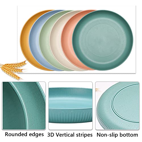 Set Piatti, 6 PCS Piatti 22,5cm 2 PCS Pura Loofah per Campeggio Picnic Barbecue Pane Dessert Piatti Piani Plastica Riutilizzabili Leggeri Plastica Microonde Lavabili Lavastoviglie Senza BPA Colorati