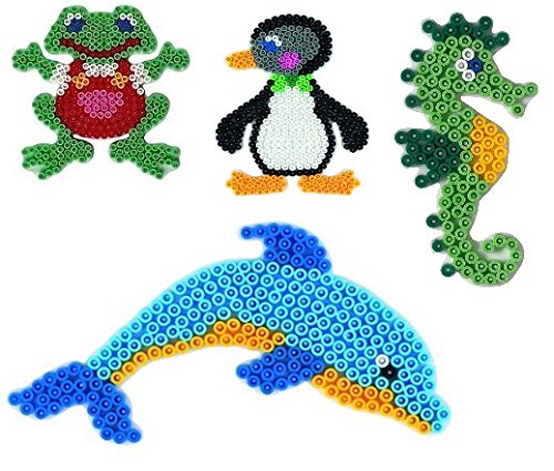Hama Midi - Set di 24 piatti per penna con animali acquatici, cavalluccio marino, pinguino, delfino, rana + 100 perline in omaggio