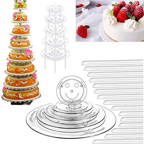 Piatti Separatori per Torta, 5 Livelli 35 Pezzi Supporto per Bastoncini per Torta Aste per Tasselli per Torta Cravatta Trasparente Tasselli Impilabili per Torta Pilastro per 3,4,6,7,10"supporto