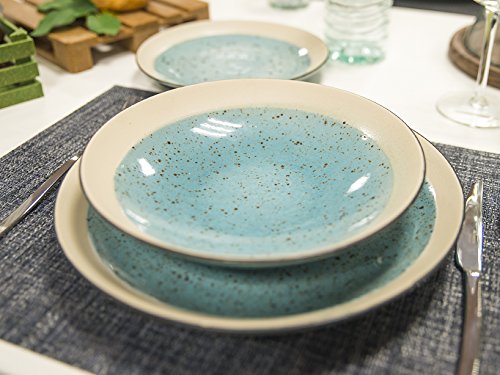 6 piatti in stoneware mimosa azzurro frutta 20,5