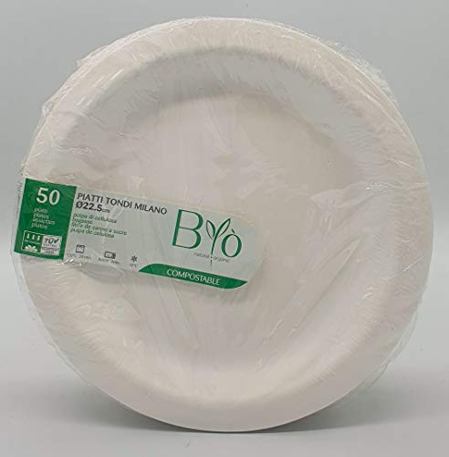 50 Piatti Tondo Ø 22,5 h. 3 cm.15 gr. biodegradabile e compostabile Robusto Feste sagre Byò Piatto Unico Milano