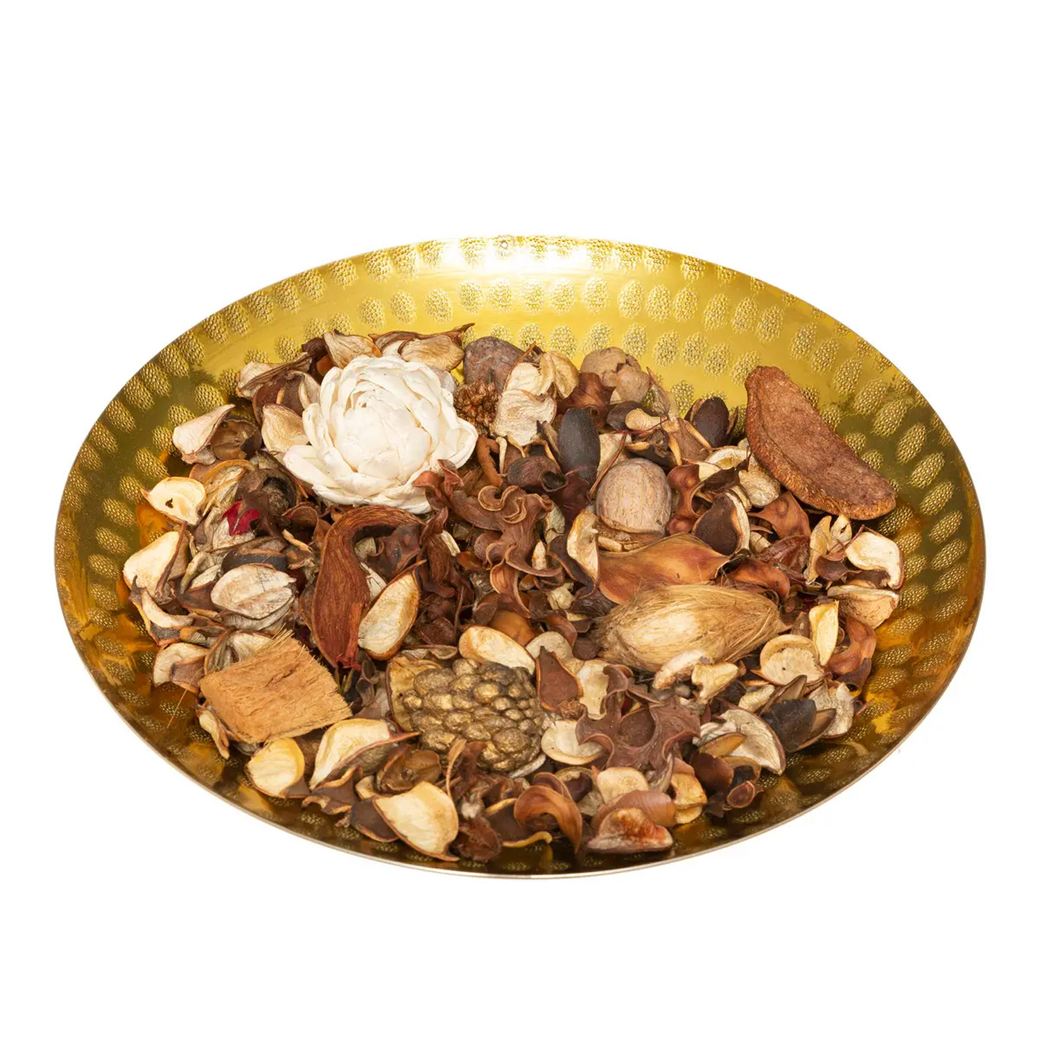Rendi ancora più accogliente l'atmosfera nel tuo salotto con questo elegante set decorativo composto da piatto e confezione di fiori secchi. L'ampio vassoio in metallo è caratterizzato da un design lucente e accattivante e perfetto per ospitare una distesa di profumato potpourri. Nel set trovi già un sacchetto da 140 gr completo di fiori secchi profumati che renderà la stanza più fresca e piacevole. Diametro piatto: 28 cm.