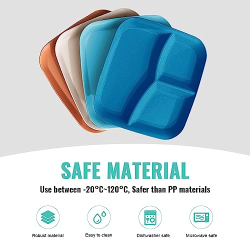 La confezione include: 4 piatto scomparti (beige + arancione + blu scuro + azzurro). Dimensioni: 25,5 x 22,5 cm. Perfetti per la maggior parte delle famiglie! Lunga durata e nessuna preoccupazione di cadute. Una buona alternativa alla porcellana e al vetro.