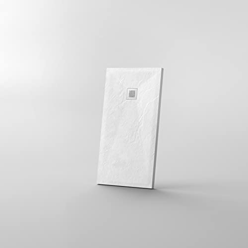 PIATTO DOCCIA 140X80 CM IN PIETRA NATURALE ESOLUTION SERIE F IN MARMORESINA EFFETTO PIETRA ARDESIA DIVERSI COLORI BIANCO NERO GRIGIO BEIGE 140X80 CM (BIANCO)