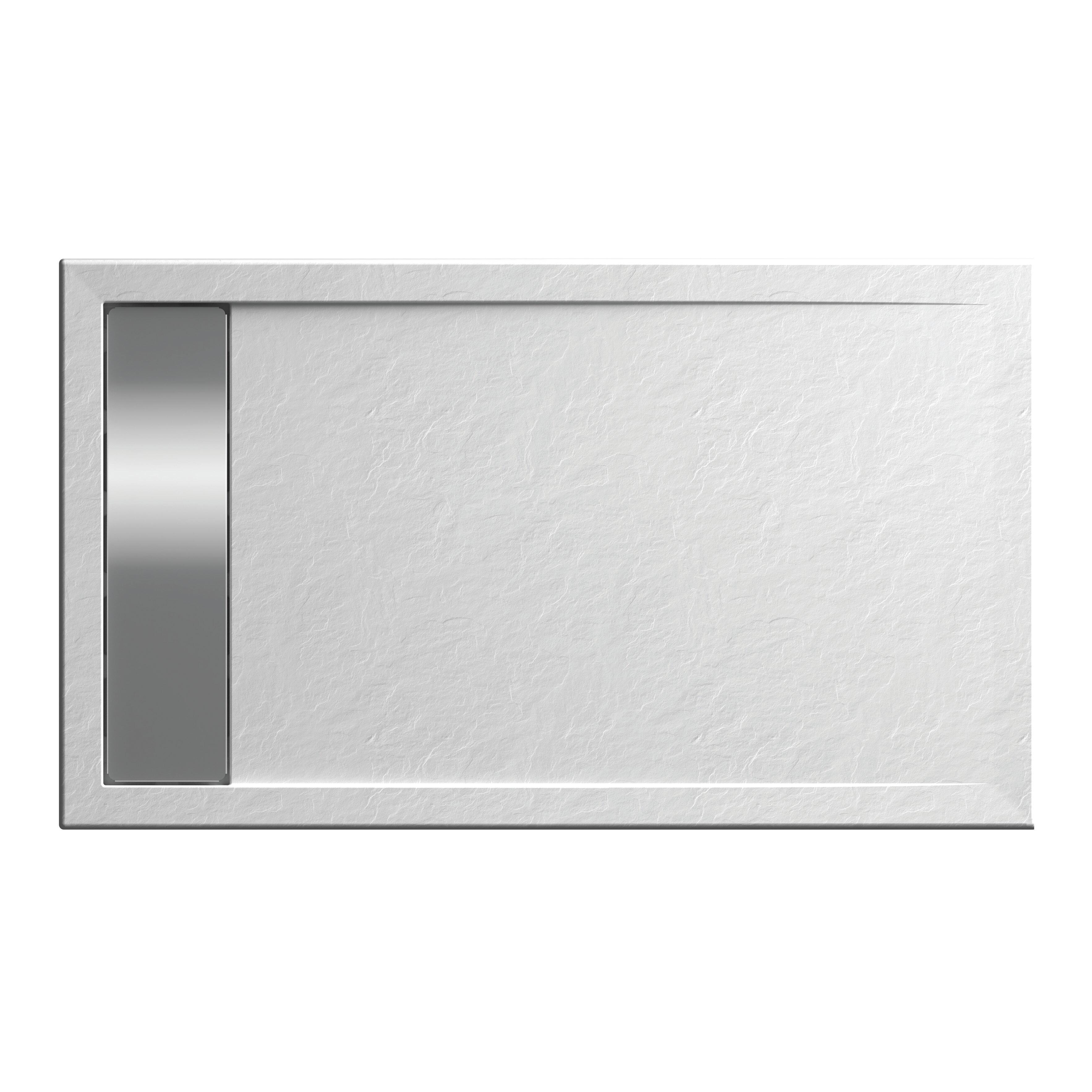 Piatto doccia BALI STONE in acrilico rinforzato colore bianco, con superficie materica effetto ardesia e con copripiletta in acciaio inox, dimensione 170x80cm