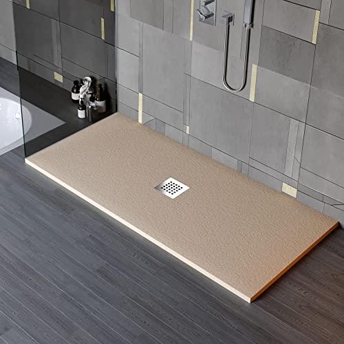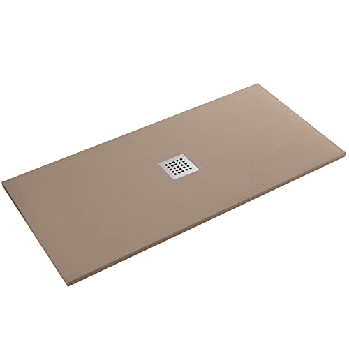 Piatto doccia in MINERAL MARMO effetto pietra ardesia di colore TORTORA RAL 1019. Foro centrale. Accessori inclusi: piletta e griglia inox.