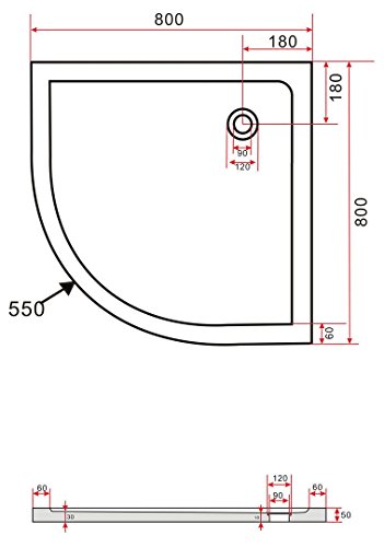 80 X 80 piatto doccia piatto doccia extra piatto 50 mm un quarto di cerchio bianco