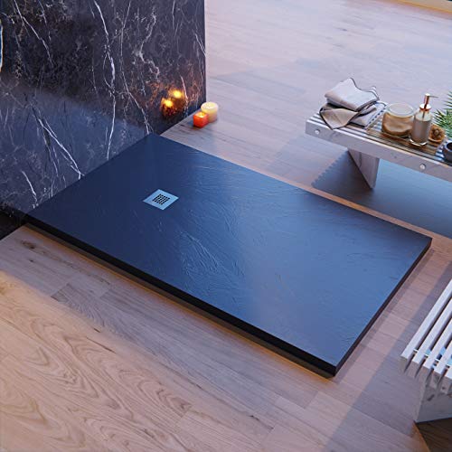 Piatto Doccia Made in Italy, color Antracite, Luxury, in Mineral-marmo, rivestimento in Gelcoat, slim 2,8/3,2 cm, massa piena e tagliabile, antiscivolo, antigraffio, antibatterico (80x110)