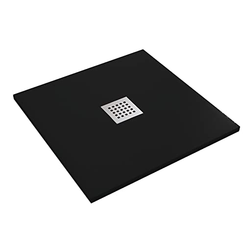 Piatto doccia in MINERAL MARMO effetto pietra ardesia di colore NERO RAL 9017. Foro centrale. Accessori inclusi: piletta e griglia inox.