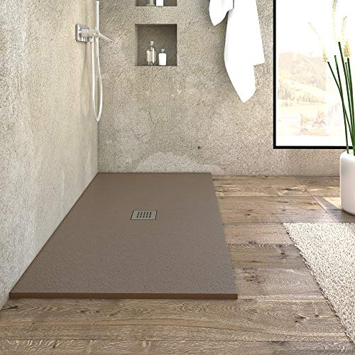 Piatto doccia in marmoresina da design ultrasottile linea PIETRA colore marrone (130 x 70 h 2,5)