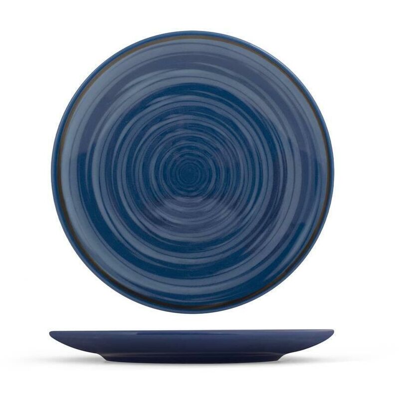 Piatto piano Maracuja in stoneware 26 cm, forma coupe nella variante colore blu. Caratterizzato da una tonalit audace, finiture inaspettate ed una trama circolare al centro che dona particolari sfumature.