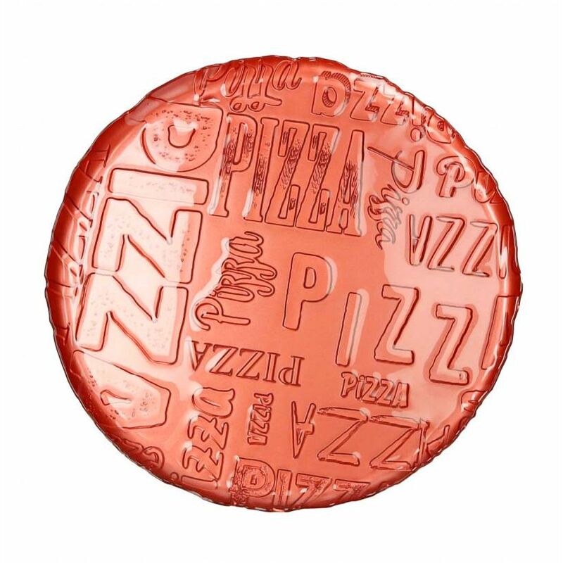 Misure: cm d 34 Peso: kg 1.03 Materiale: vetro Colore: arancio (disponibile anche trasparente, ocra ed acquamarina!) Lavastoviglie: si Caratteristiche: -resistente, colorato -pattern frizzante con scritte “Pizza” diffuse - simpatica e resistente confezione singola di colore naturale, che ricorda davvero un cartone per pizza!
