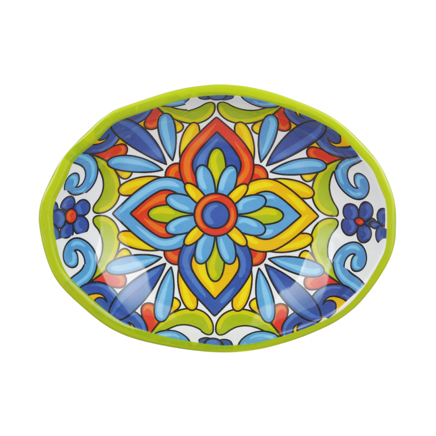 Il piatto da portata Lipari è un accessorio elegante e colorato realizzato in melammina di alta qualità, nota per la sua resistenza e durata. Grazie al materiale, i piatti in melammina sono leggeri da trasportare, resistenti agli urti e garantiscono nel tempo un utilizzo sicuro anche per i bambini. Decorato con un vivace design multicolore che richiama motivi tradizionali mediterranei, questo piatto presenta un bordo verde che incornicia un intricato motivo floreale centrale. Ideale per aggiungere un tocco di stile e allegria alla tua tavola, è perfetto per l'uso quotidiano e per rendere speciali i picnic all'aria aperta. Inoltre è lavabile in lavastoviglie, garantendo così facile pulizia e manutenzione.