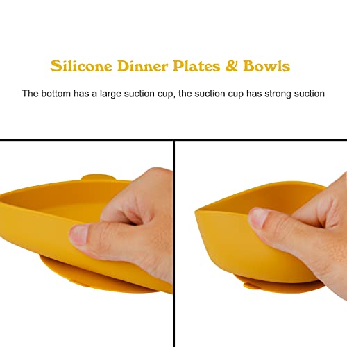 【Pratico design aspirazione】 Il tuo piccolo cattivo gira spesso i piatti mentre mangia, lo residui di cibo sono ovunque? Non preoccuparti, le ciotole e i piatti in silicone per bambini hanno un aggiornamento aumenta l'area potente design a ventosa nella parte inferiore, che può fissare le posate sul tavolo, appositamente progettato per l'età da 6 mesi a 4 anni, per evitare che i bambini rovescino le stoviglie.