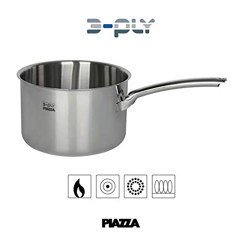 Piazza Casseruola Alta in Acciaio con 1 Manico - Collezione 3-Ply - 28 x 18 cm, Argento
