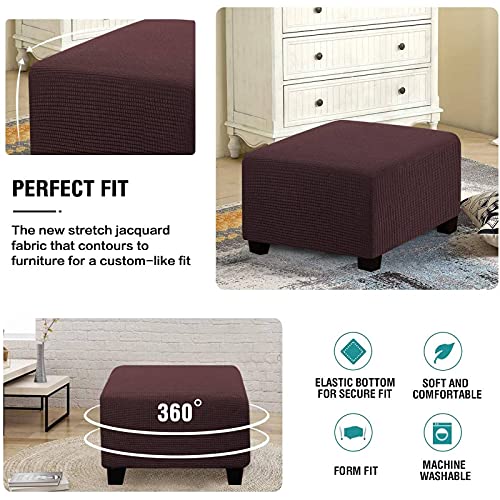 Piazza Copri Pouf, Elasticizzato Copertura Dell'Ottomano Elastico Jaquard Fodera per Pouf Copri Poggiapiedi Lavabile in Lavatrice per Camera da Letto Soggiorno-caffè-Grande