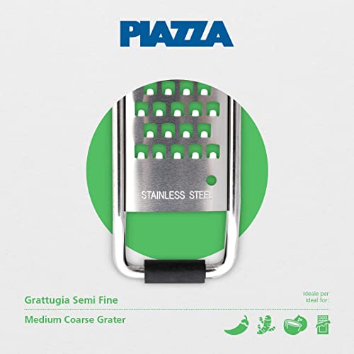 PIAZZA - Grattugia Formaggio Manuale in Acciaio Inox - Manico Antiscivolo 38.5cm - Lama Semi Fine 22x3.5cm - Ideale anche per Verdure, Limone, Mela, Patate, Carote, Agrumi