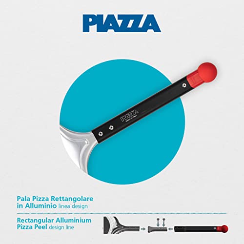 PIAZZA - Pala per Pizza Corta Professionale Rettangolare 30 cm, in Alluminio e con Manico in Alluminio - Robusta, Leggera e Resistente al Calore Max 550°C per Tutti i Tipi di Forno - Made in Italy